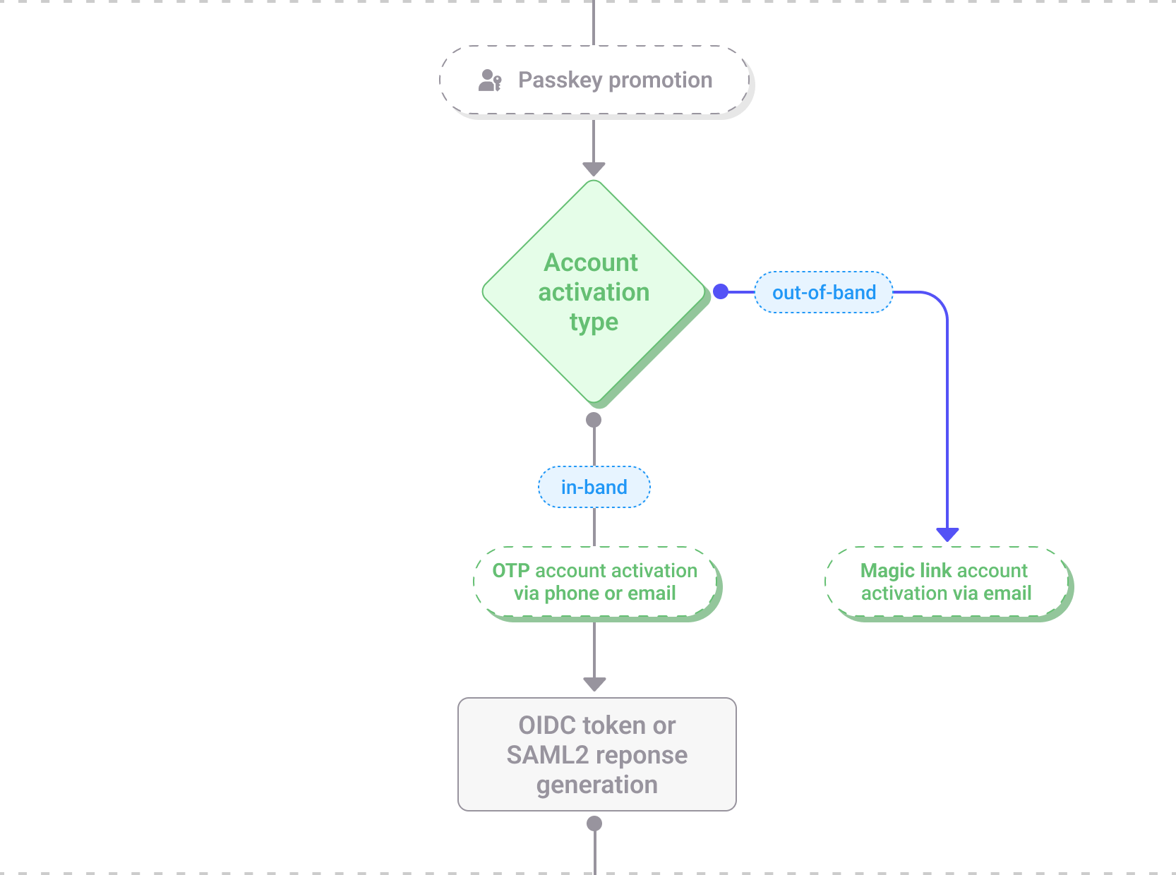 - Self-service policy: Must have account activation enabled, and specify the activation method—either magic link after registration or passcode during registration.