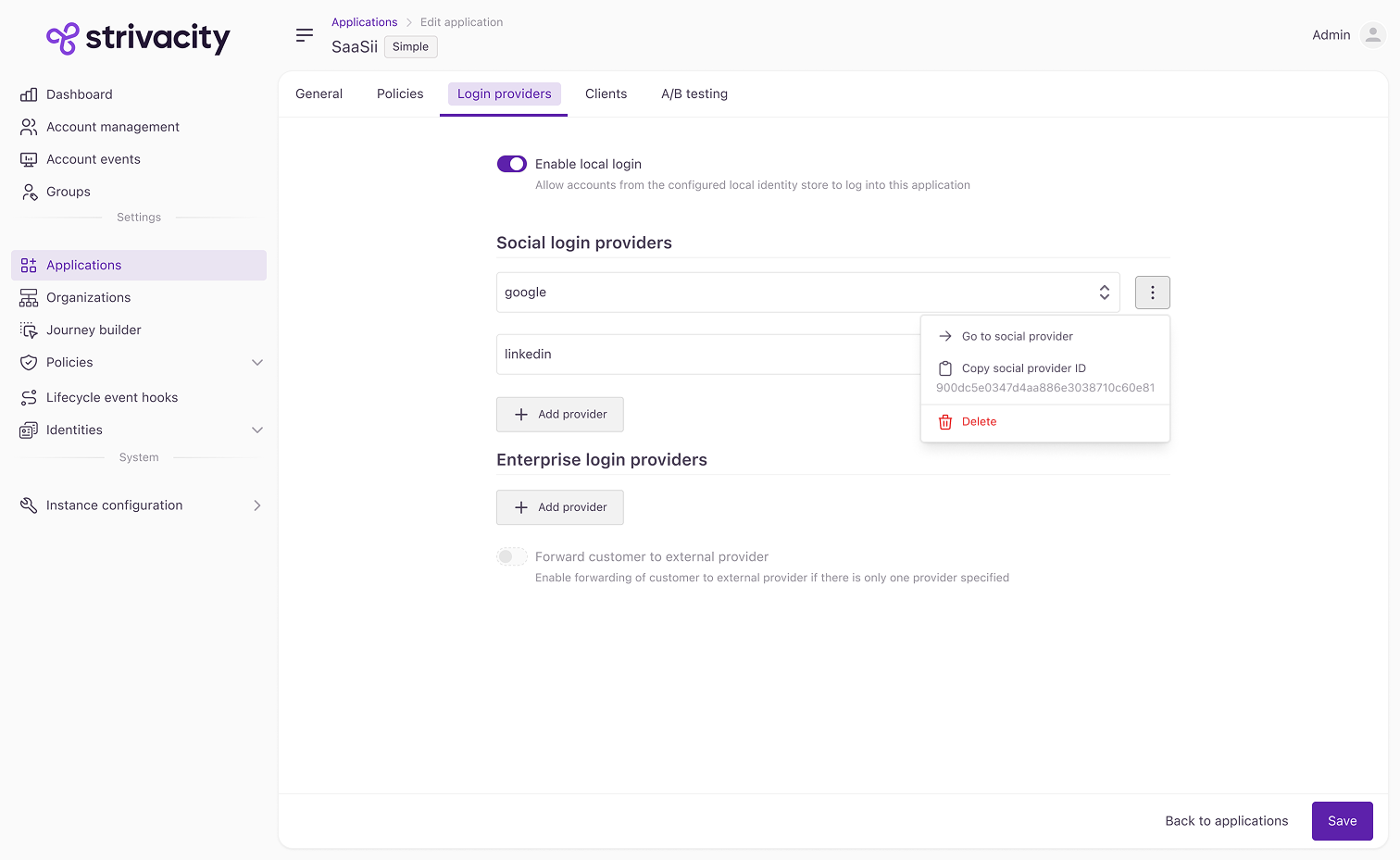 Strivacity provides contextual navigation between related configuration entities in the Admin Console. This allows administrators to quickly access referenced items without manually searching or navigating across modules.