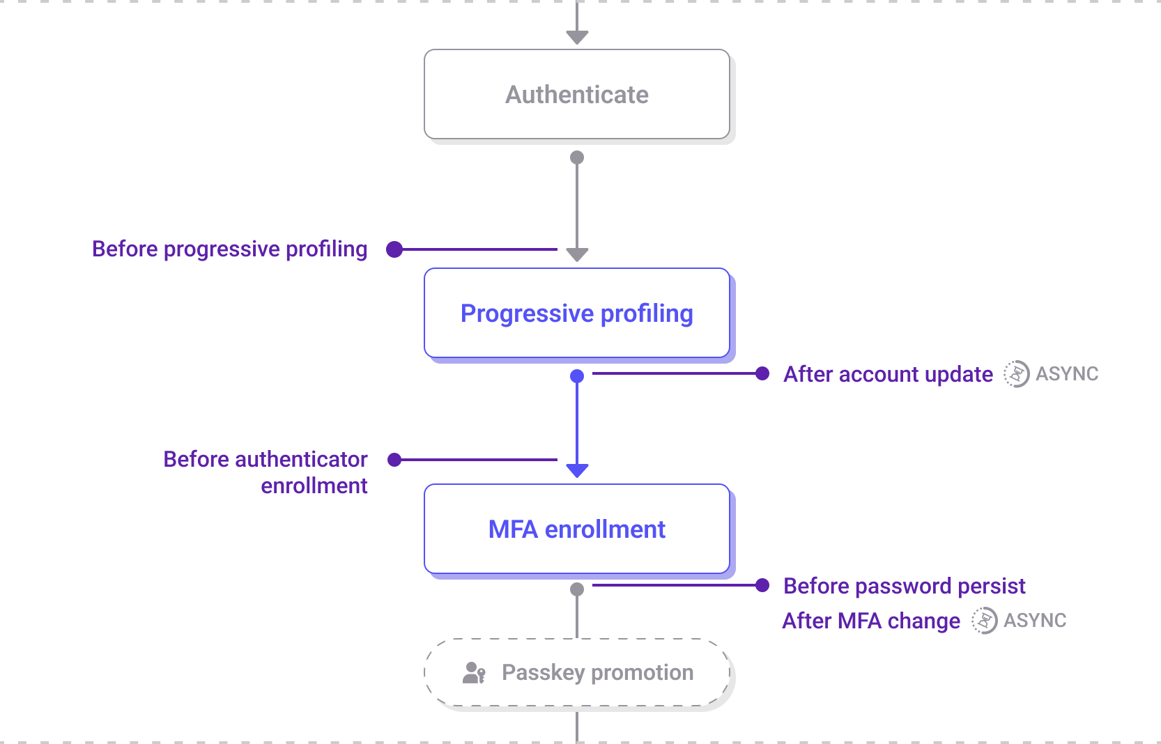 Strivacity’s progressive profiling ensures that all application policy requirements are met before granting access while providing tools to create custom profiling flows. This feature allows brands to enforce new requirements dynamically, such as collecting additional customer information, obtaining consent, or enrolling in Multi-Factor Authentication (MFA).